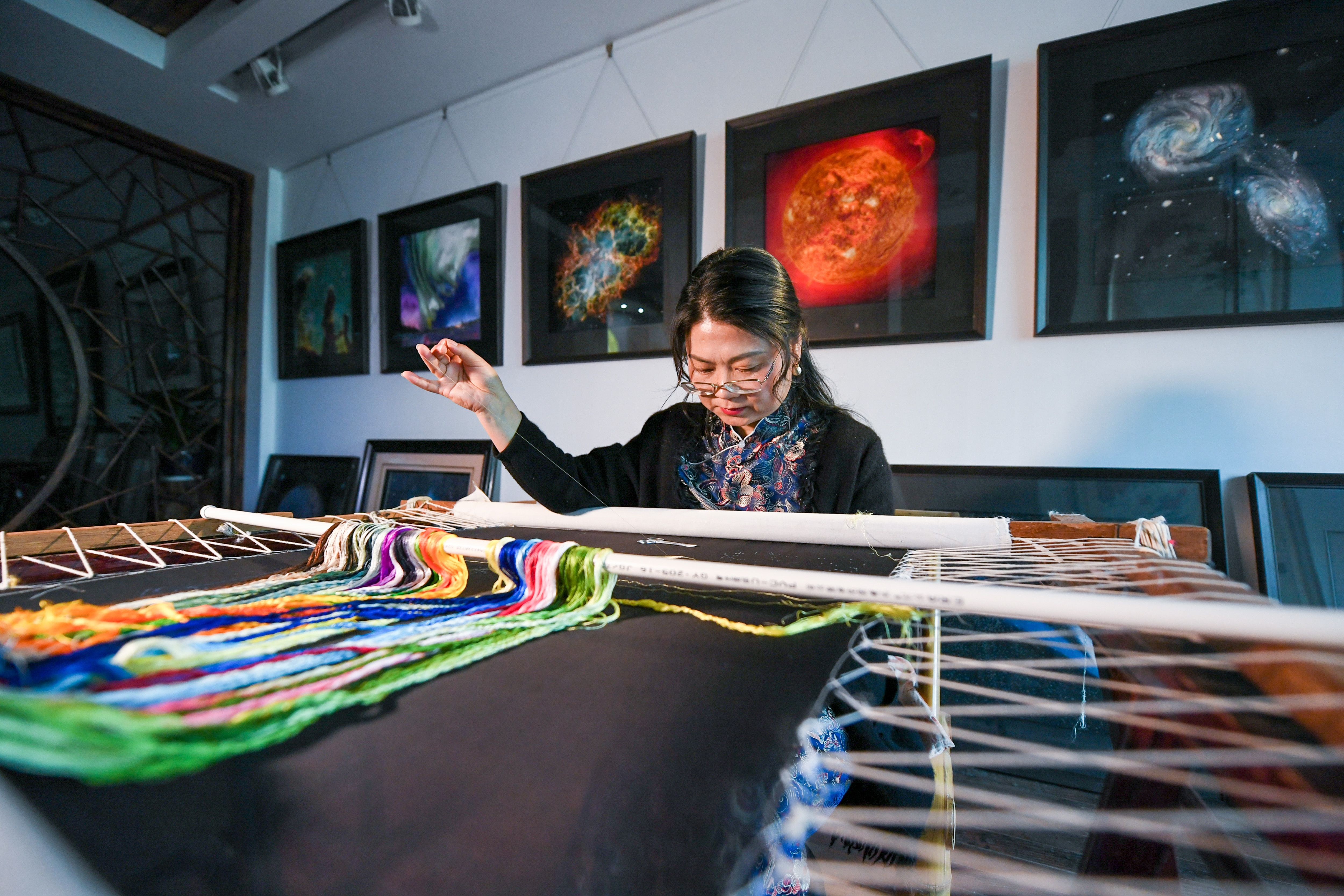 从事苏绣责任40多年的陈英华,也用苏绣定格当然之好意思——经过多量次牵线搭桥,将上万种情绪和针线相互交汇,将银河之好意思定格在织物之上。