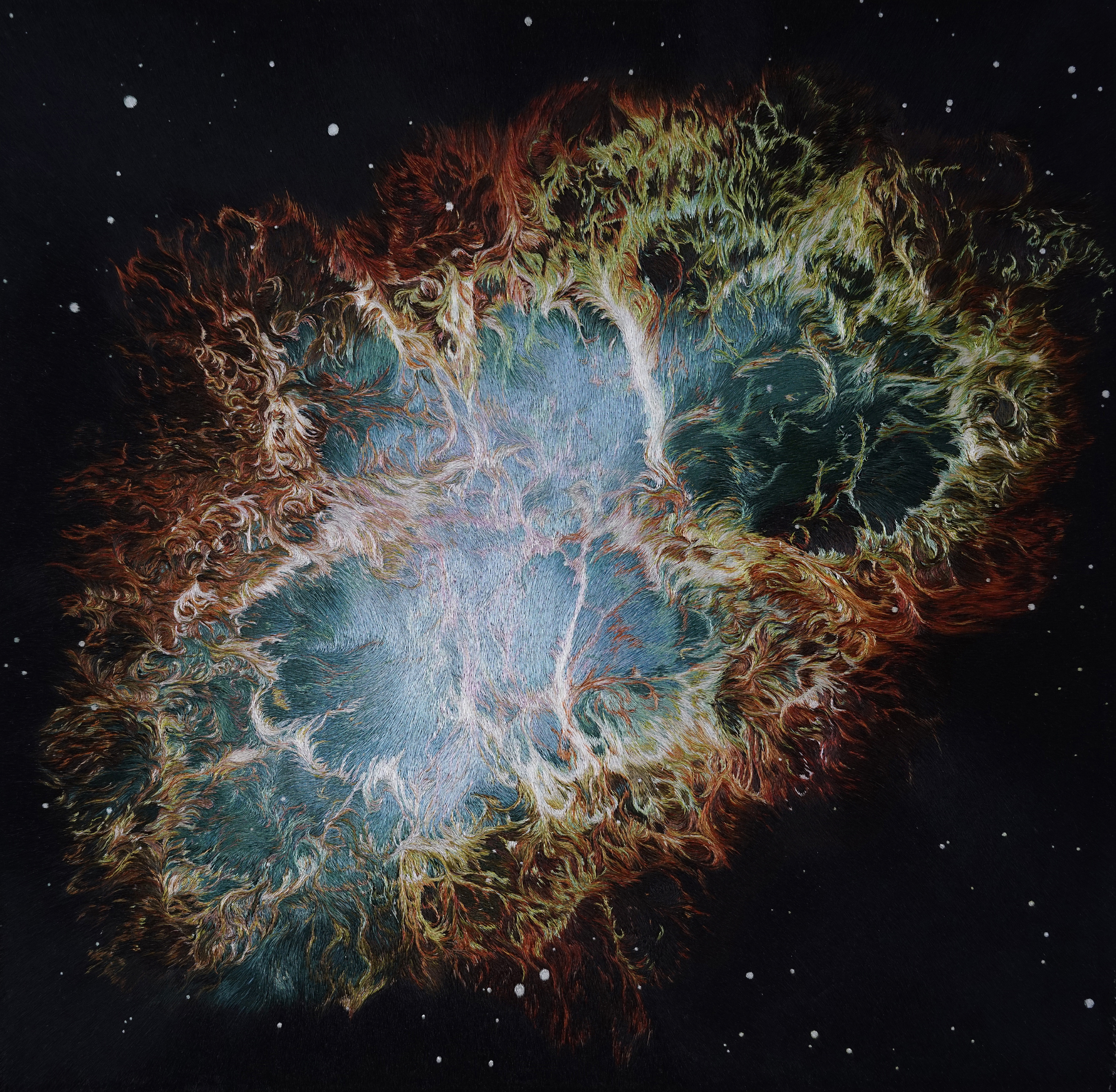 《蟹状星云》《狮子座流星雨》《猎户座大星云》《马头星云》《日斑》《星空》……有东谈主说陈英华是“织女下凡”,有东谈主赞她“为天下带来名胜”。在她看来,我方的刺绣“星空系列”与霜降骨气存在“精妙的精神共识”。“它们皆在‘一草一木’与‘一叶一秋’中,完成了对天地模范的诗意丈量。”